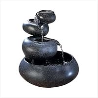 (More customer reviews)I bought this as a gift, but knowing that these kinds of small fountains can be less than fulfilling, I decided to test it out first. It has enough weight to make it hard to accidentally knock over. Construction and initial quality is very good. Assembly was very easy and straightforward, though the pickup tube is a bit longer than necessary. It worked very well, with no splattering (a big concideration when using indoors). The pump is almost noiseless (another big concideration when using indoors) and the flow is adjustable. There is little or no water sound with the flow set fully open (I did not test it on any other setting). There were no recommendations on how much water to start with, so I experimented until I found that between 4 and 5 cups was plenty. Another missing recommendation was what type of water to use; I suggest filtered or distilled.