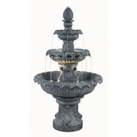 (More customer reviews)This item was on backorder for about 2 months. When it finally arrived, it was in a large box that was quite heavy (2-person type). The box was damaged in several places, but everything inside was fine. However, several key components were missing - namely the pump, lights & transformer. Rather than returning the entire thing to Amazon, I contacted the mfg (by phone) and they agreed to ship me everything at no cost. The parts arrived 2 weeks later (surprising since the rep said everything was in stock & they would be shipped out the next business day). Now comes assembly, which was pretty straight forward except when it came to connecting the hose to the pump. The hose was too short and it ended up being a 2 person job (one holding the upper tiers while the other attached the hose to the pump). Another problem was the top tier was noticably crooked. I tried to re-seat it several times but it was obviously a mfg defect. I ended up turning the fountain in such a way that it was not as noticable. I then filled it with water & plugged it in. Everything appeared to be OK and I let it run overnight. The next day I noticed another defect - water was leaking somewhere between the bottom tier and pedestal. I verified everything was seated properly & filled it with more water. That's when I noticed a slow leak trickling out onto my patio. That was the last straw. I disassembled everything, boxed it up & sent it back to Amazon. I have to mention one other thing about this fountain that I really didn't like - the fact that the lights stay on all the time. The mfg should have put the lights on a separate transformer so they could be controlled independendly from the pump. I prefer to keep the pump running all the time and turn the lights on for only about 6 hours at night. The fountain looks great, but it was a major dissapointment overall - especially when it cost nearly $400! I would not recommend it to anyone until they fix the problems and separate the pump from the lights.