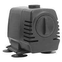 (More customer reviews)Comes with an assortment of plastic fountain attachments and the suction cup feet are a nice touch. The housing shown in the front view of the picture, with the dial and the filter slots for water intake, is used when you wish to draw water from the same pond as the pump. This pump cover can be replaced with the included intake nozzle that can be attached to a tube so you can draw water from another pond for a waterfall setup.