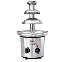 Add to the festive atmosphere of birthdays, cocktail parties, and holiday gatherings with this easy-to-use chocolate fondue fountain. The auger-style fountain holds up to about 2 pounds of chocolate and features a two-tier tower with a heated base and user-friendly controls. Just pour melted chocolate into the basin and switch on the motor; the chocolate travels up the tower before gently cascading over each tier. Guests will enjoy dipping strawberries, cherries, marshmallows, pretzels, and more into dark semi-sweet, milk, or white chocolate (chocolate that contains at least 30-percent cocoa butter recommended). The countertop appliance provides nonslip feet, a thermostat and safety fuse for safe operation, and an easy-to-disassemble design for quick cleanup. Made of stainless steel and durable heat-resistant plastic, the 170-watt chocolate fountain measures approximately 9 by 8 by 13 inches and carries a 90-day limited warranty.
