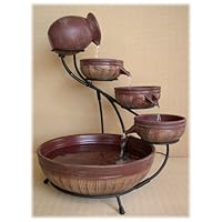 (More customer reviews)This cascading fountain works beautifully. It blends in with surroundings being brown. I have it set up next to a bird feeder cage set in my window which has reflective film on it . That way I can stand very close to the birds without them seeing me. Since installing the fountain the birds have increased coming to feeder. Not only birds but a family of squirrels also use it.If a little care is taken with fountain such as cleaning it regularly and using a little bleach and cleaning pump screen it should last a very long time. The fountain was delivered in good time and it all remained intact . Easy to set up. Very pleased with service and product