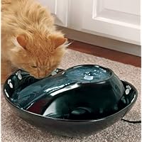If you're hunting for a ceramic water fountain, this has it all: quiet, beautiful, and easy to clean. Ironically, the ceramic keeps the water cooler which he seems to like. I'm giving this five stars (for the fountain and the filter) and consider it the best buy ever.