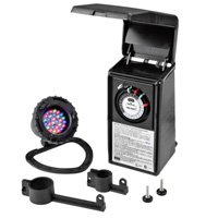 (More customer reviews)I originally had the 20W Halogen Model and bought this one to replace it, yes it costs about twice as much but your using 1/3 the electricity and no more swapping out the Color Discs just turn the power switch on and off and you get one of 7 different colors, a Party Mode( perfect for the 4th of New years) or 3 different speed color wheels. I have tried multiple different fountain lights and they never last, fill up with water and short out the bulb, Little Giant Makes a Quality, Water Tight Light that will last, stay away from those Harbor Freight Specials.